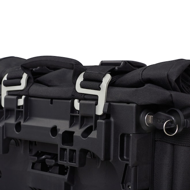 Sada sedlových brašen je vybavena 6 sponami DURAFLEX, které umožňují přizpůsobit brašnu velikosti nákladu a zvyšují stabilitu jízdy. Všechny konce popruhů jsou navíc opatřeny záslepkami, které zabraňují třepení. Má také reflexní detaily pro zlepšení viditelnosti a polstrovaná ucha pro přenášení.