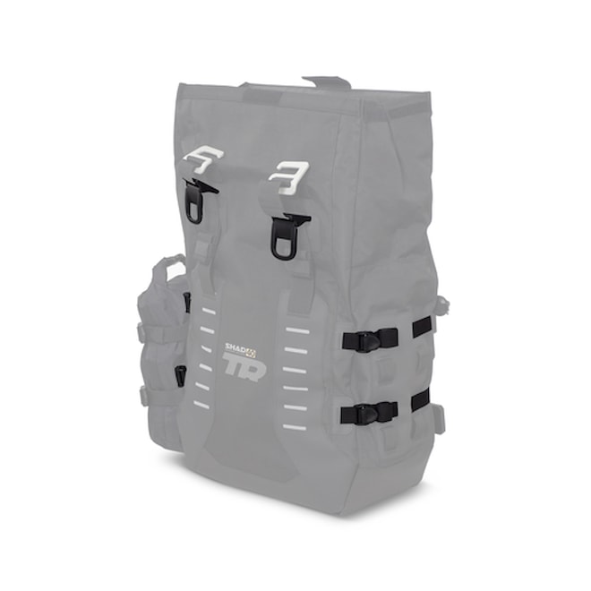 Kromě toho, že jsou brašny TR40 připraveny na sportovní jízdu v terénu, nabízejí skvělou praktičnost díky své nízké hmotnosti, dokonalé integraci s montážní sadou SHAD 4P Systém a 8 zesíleným místům pro uvázání dalšího nákladu a příslušenství. Součástí TR40 je popruh na láhev a vnější vodotěsné pouzdro, které lze instalovat do kteréhokoli ze systémů MOLLE.