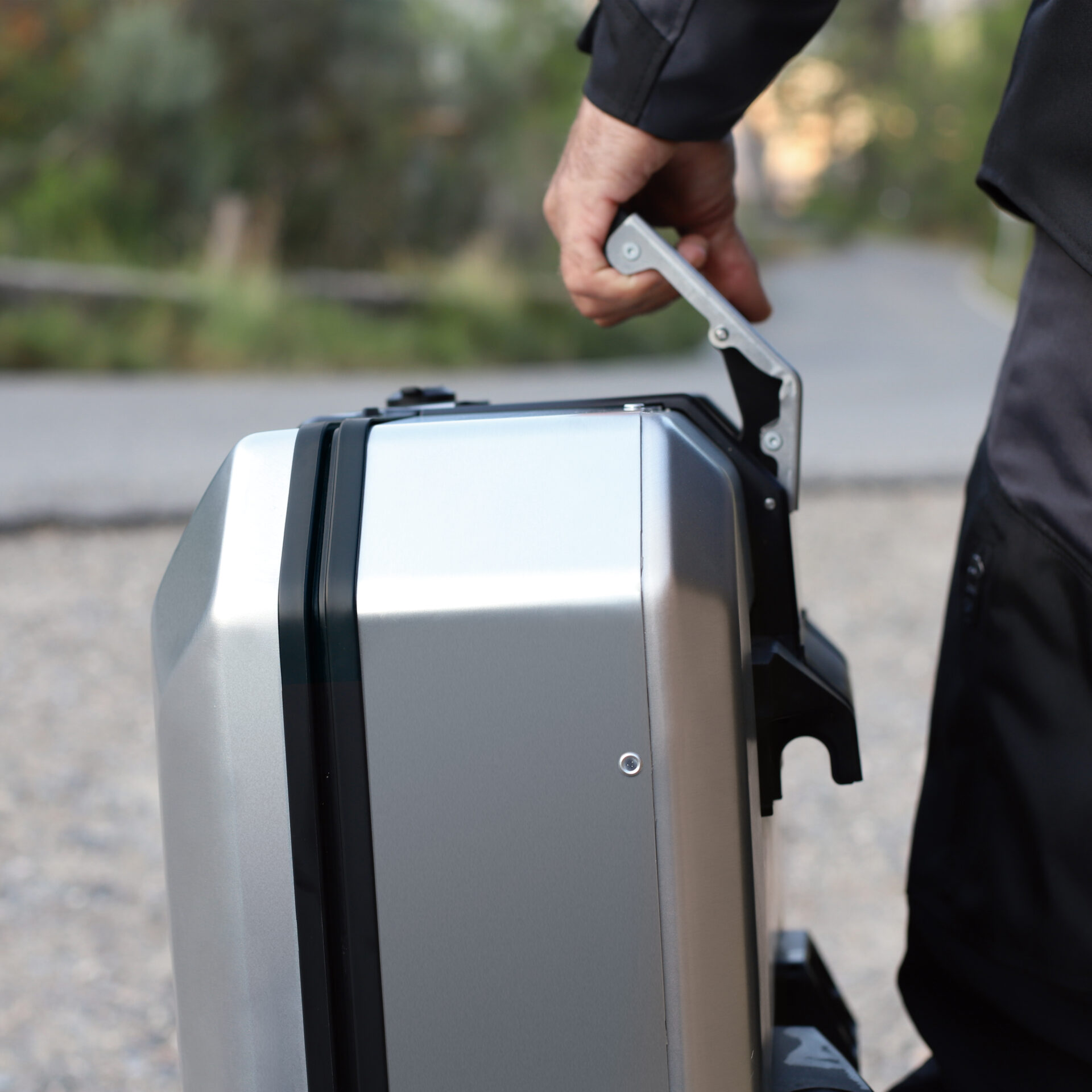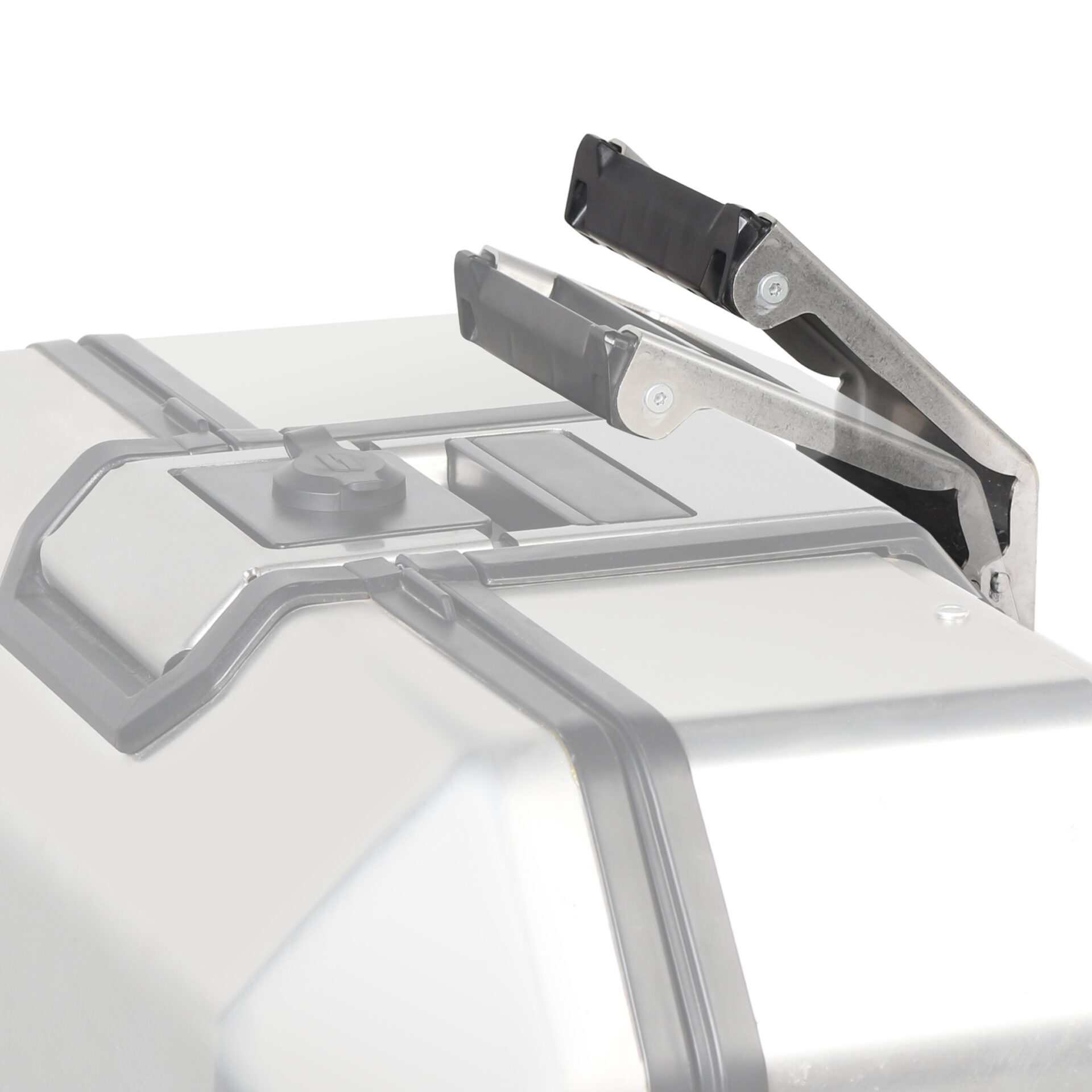 Unikátní integrovaný mechanismus zámku a madla umožňuje jednoduché ovládání jednou rukou a snadnou demontáž z motocyklu.