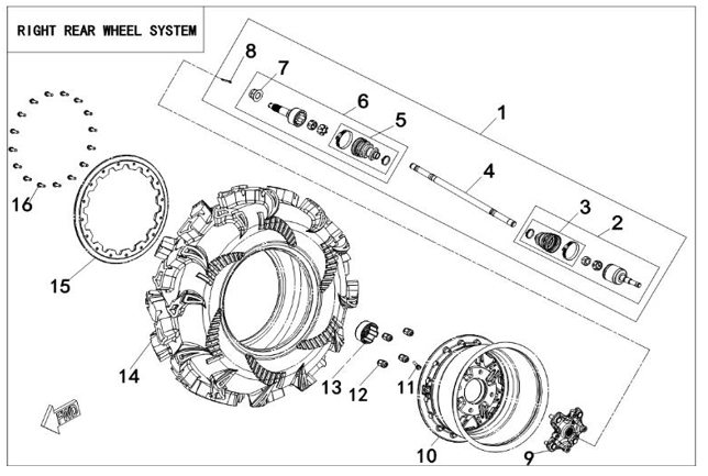 Pravé zadné koleso na XWolf 1000i Long MUD