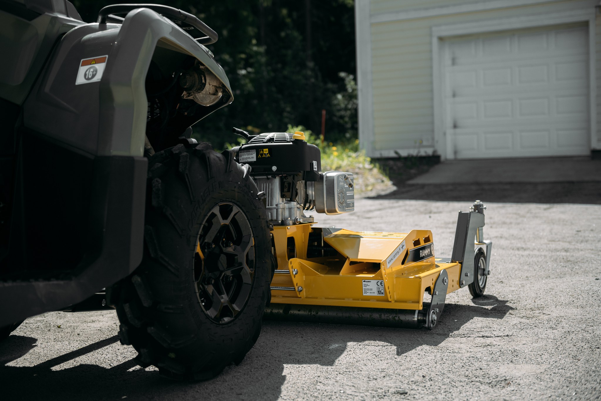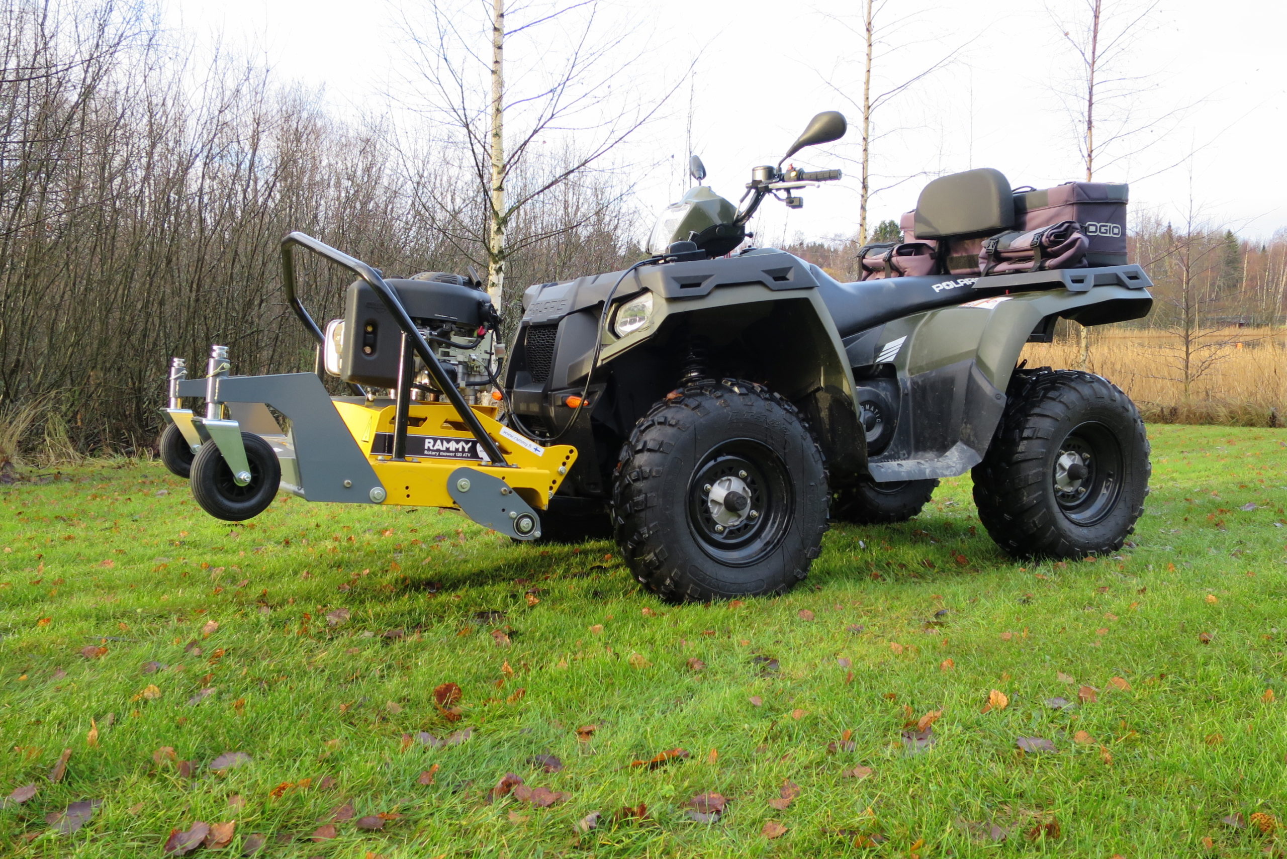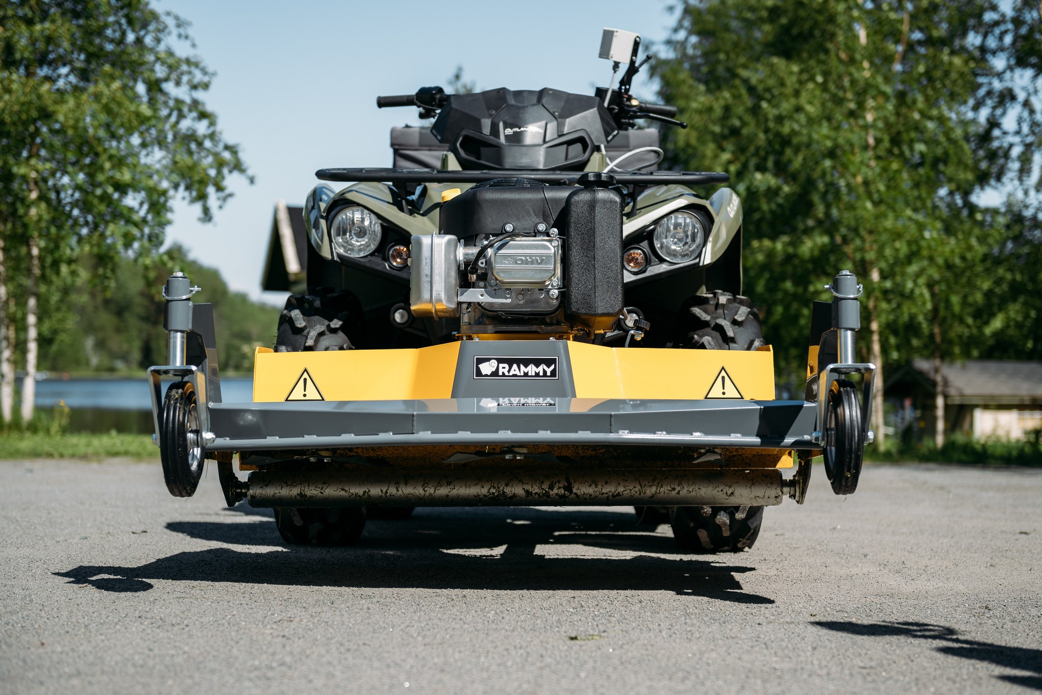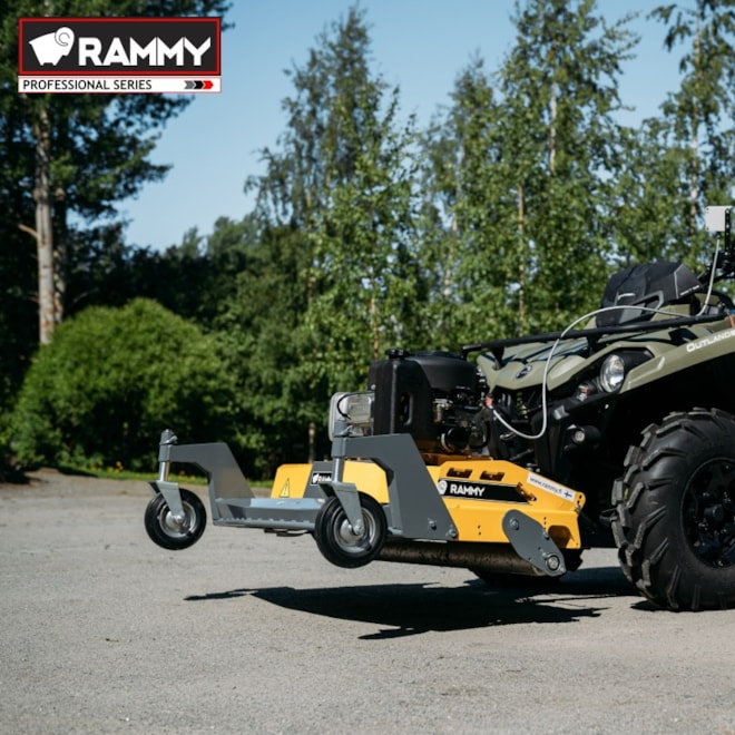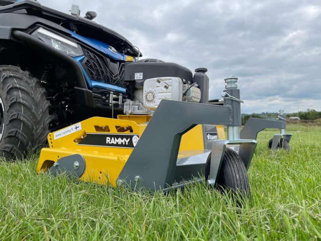 Sekačka s předním uchycením od finské firmy RAMMY pro čtyřkolky a UTV. Perfektní pomocník na posekání velkých pozemků. Skeačka je vybavena americkým motorem Briggs & Stratton o výkonu 13,5 HP, a bezpečnostním válcem, který zabraňuje kontaktu čepelí s půdou. Sečení zajišťují tři rotory, každý se čtyřmi čepelemi. Sekačku lze také posouvat do boků a vyosit ji tak mimo čtyřkolku až o 32 cm.