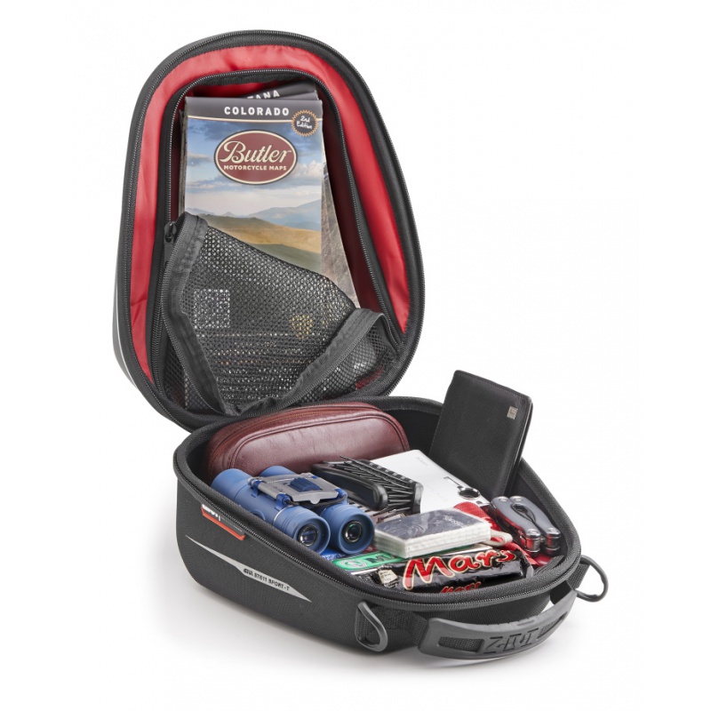 Vodotěsné zipy, vnitřní kapsa, integrovaný držák GPS nebo smartphone v pláštěnce, průchodka pro napájení. Zavazadla této nové řady jsou vybavena praktickým rychloúchytem TANKLOCK. Pro uchycení k víčku nádrže potřebujete objímku dle typu motocyklu.