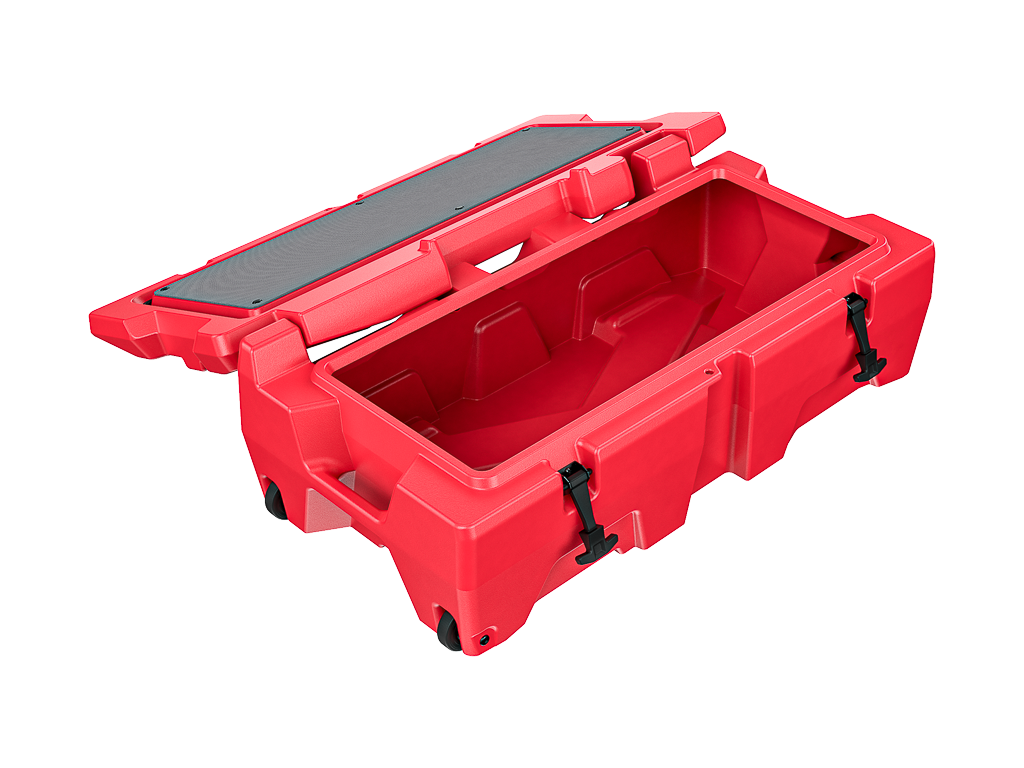 Robustní, bezpečný a všestranný užitkový box, lze díky kompaktnímu designu stohovat a také jednoduše přesouvat, protože je vybaven madlem a kolečky. Ta jsou pěkně krytá a nijak nenarušují jinak robustní vzhled boxu, který tak bude vypadat skvěle v jakémkoli prostředí dobrodružného sportu.